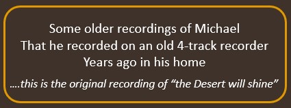 Home Photos Audio Page Video Page Memorial Links Contact A place in my mind Blue skies in Montana My heart’ll take a handout The desert will shine (original recording) Somewhere the sun is shinin’ PLAY ALL Older recordings of Michael Lewis 00:00 Back